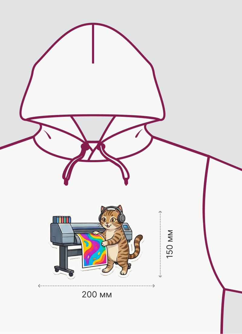 • 🧤 Тактильный комфорт: в отличие от жестких пленок, ДТФ-принт получается мягким и эластичным. Он не трескается при растяжении и не ощущается на одежде.